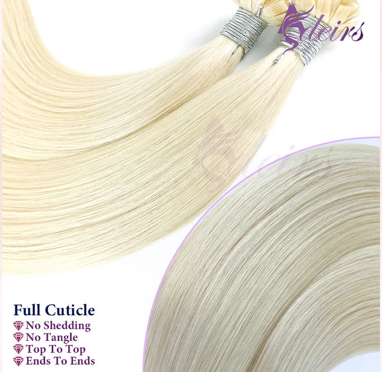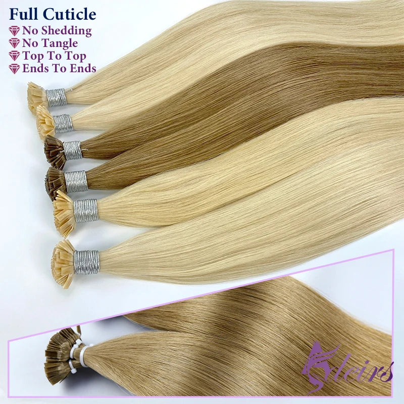 ADEIRS Flat Tip Hair Extensions 100% Real Human Hair Fusion Keratin Capsule Hair Extensions Brown Blonde Straight 1g/Strand