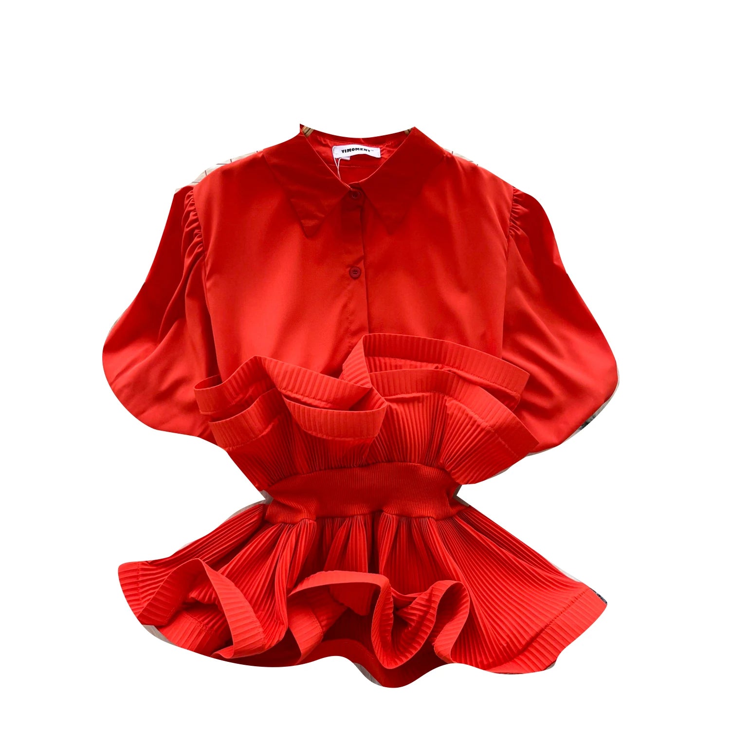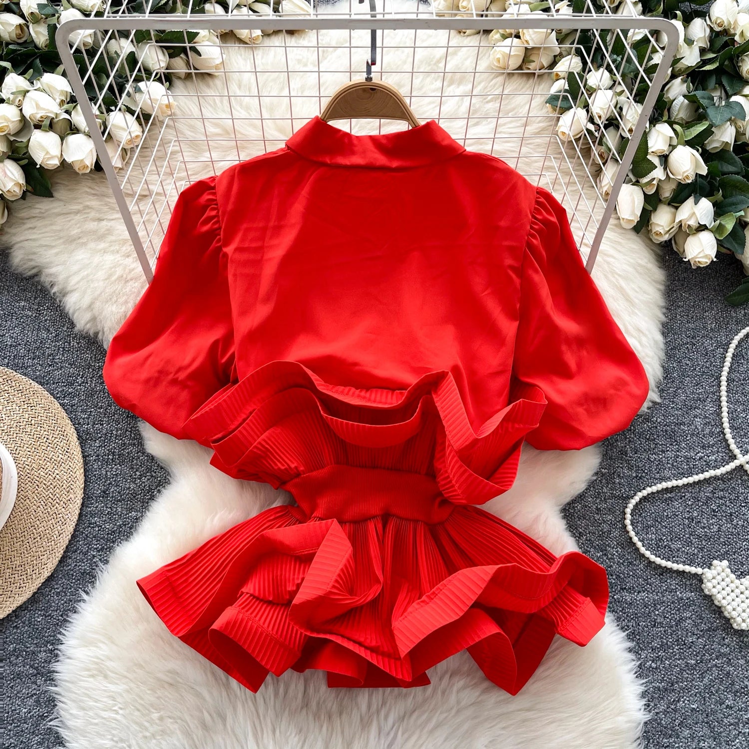 Autumn Short Sleeve Polo Collar Casual Blouses Women Puff Sleeve Ruffles Shirts Ladies Elegant Tops Clothes Women Wholesale