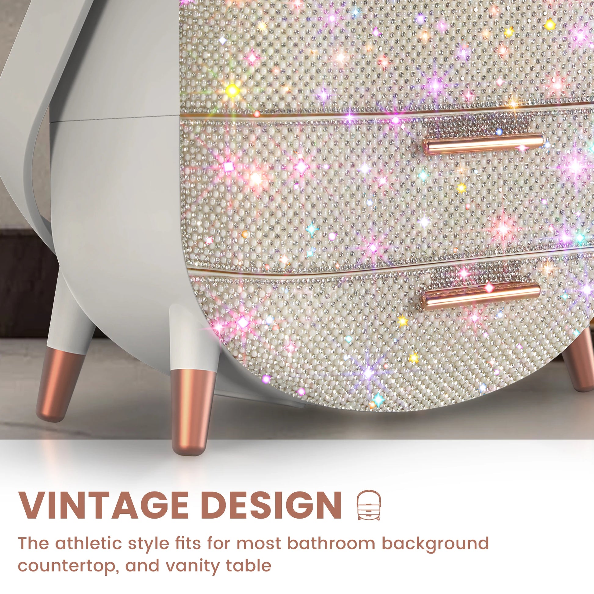 [Stunning & Awarded Design]With a stunning curved design(golden plated supporting legs and drawer handles, this makeup organizer is also a charming ornament for any countertop, vanity or dresser.