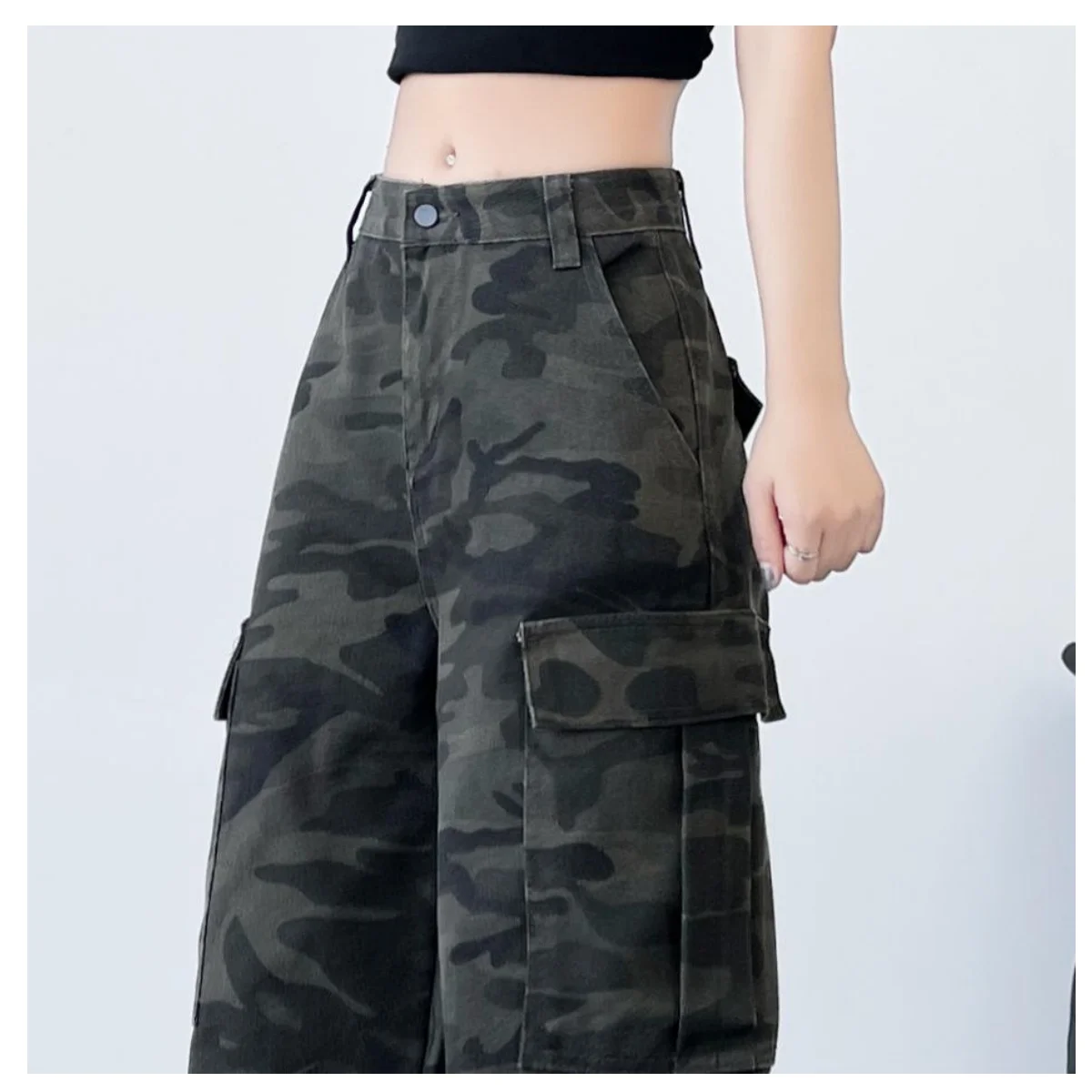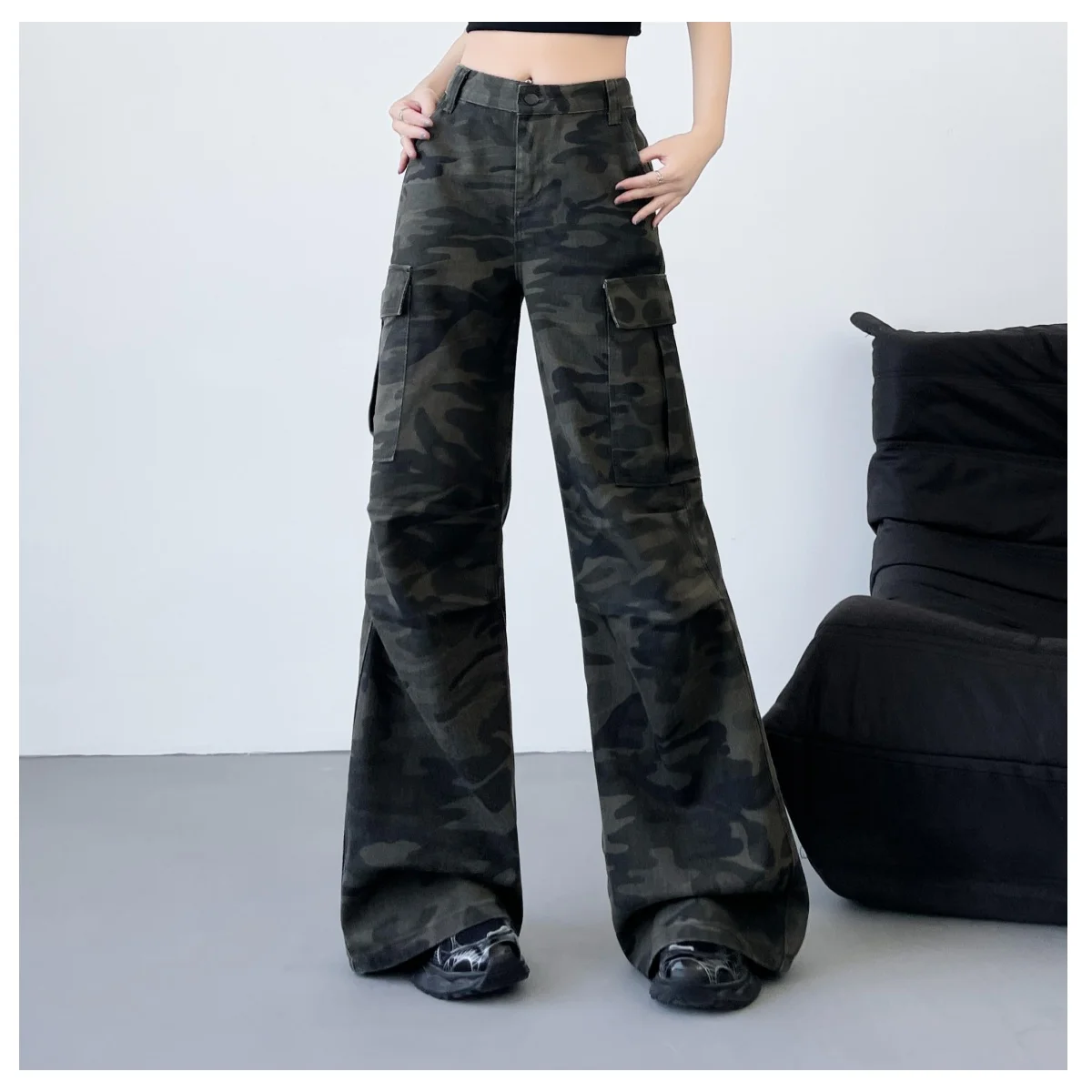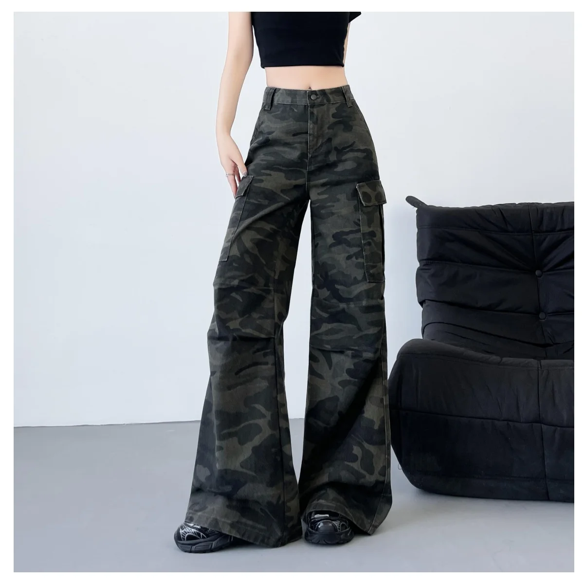 Fashionable Casual Wide-Leg Jeans American Retro Overalls Workwear Style Women's Trousers