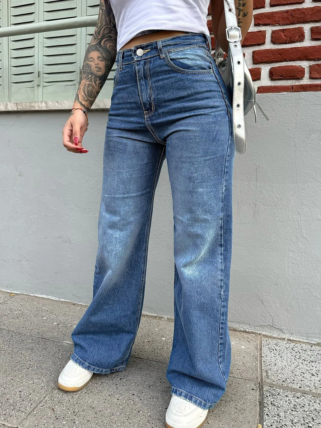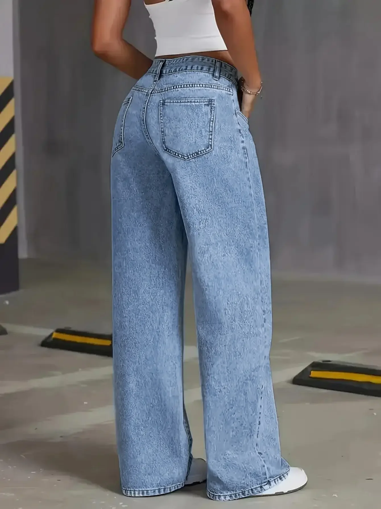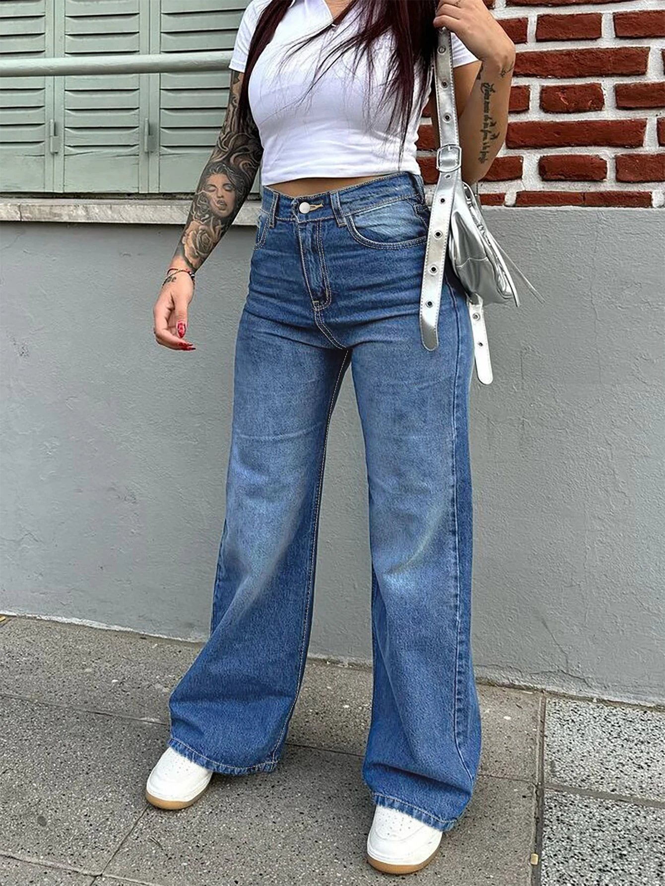 Free Shipping to USA- High Quality Vintage Women's Straight Denim Pants High Waist Wide Leg Long Jeans Stretchy Solid Pattern