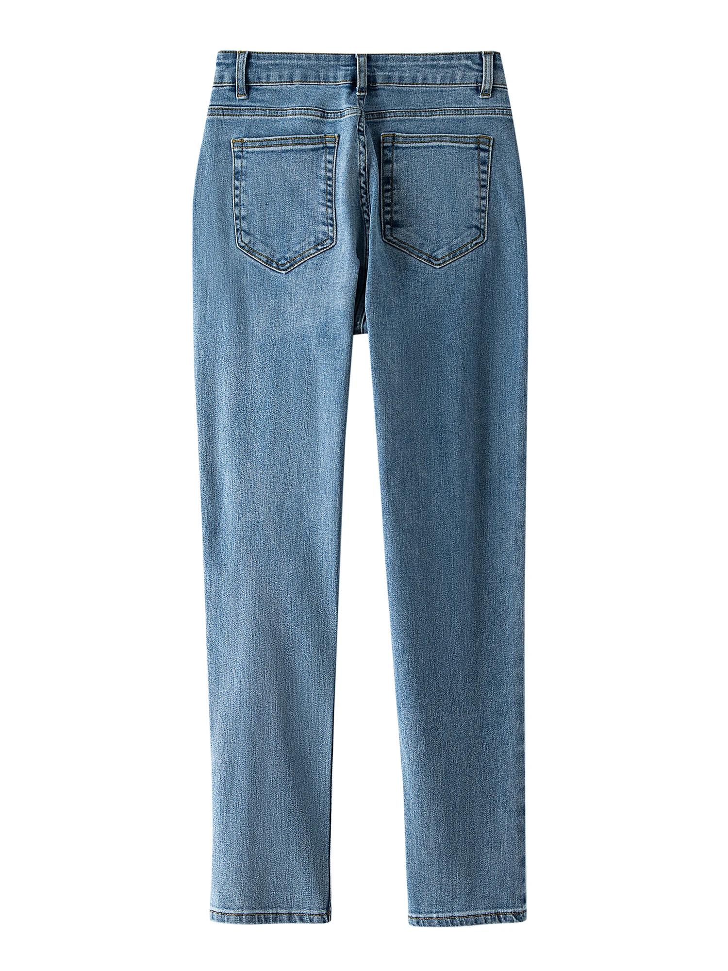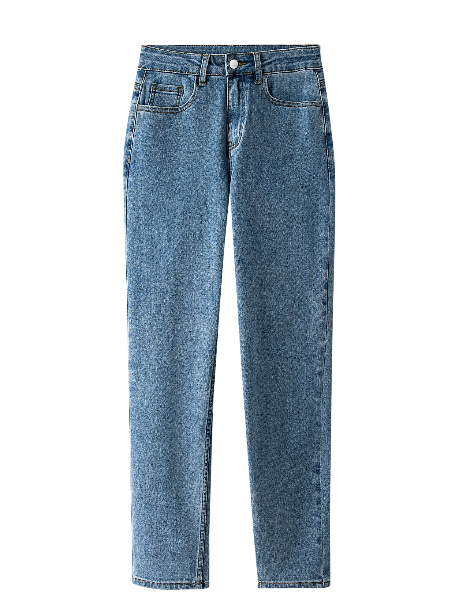 These fashion straight-leg stretch denim pants are made from a blend of Polyester and Cotton, offering a comfortable wear. The solid color design is simple and elegant, with a straight-leg fit that flatters the leg line, showcasing natural beauty. Suitable for women aged 16 to 55, the full-length design is perfect for various occasions.