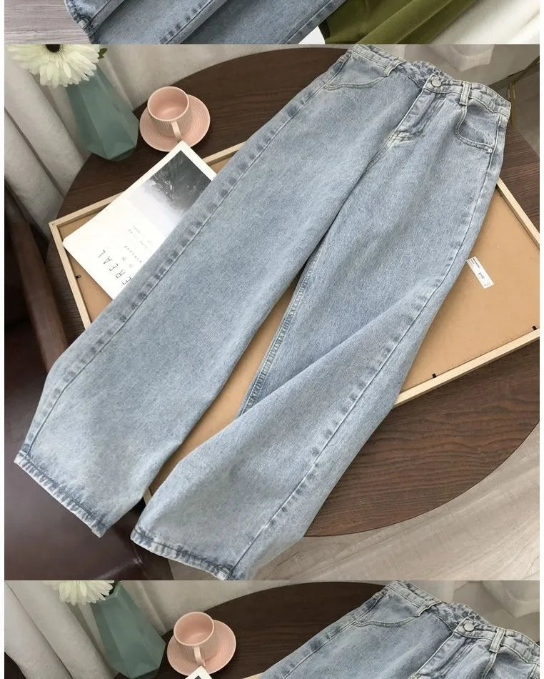 High Waist Women Jeans 2023 Spring Autumn Solid Loose Straight Denim Pants Female Retro Wide Leg Casual Trousers