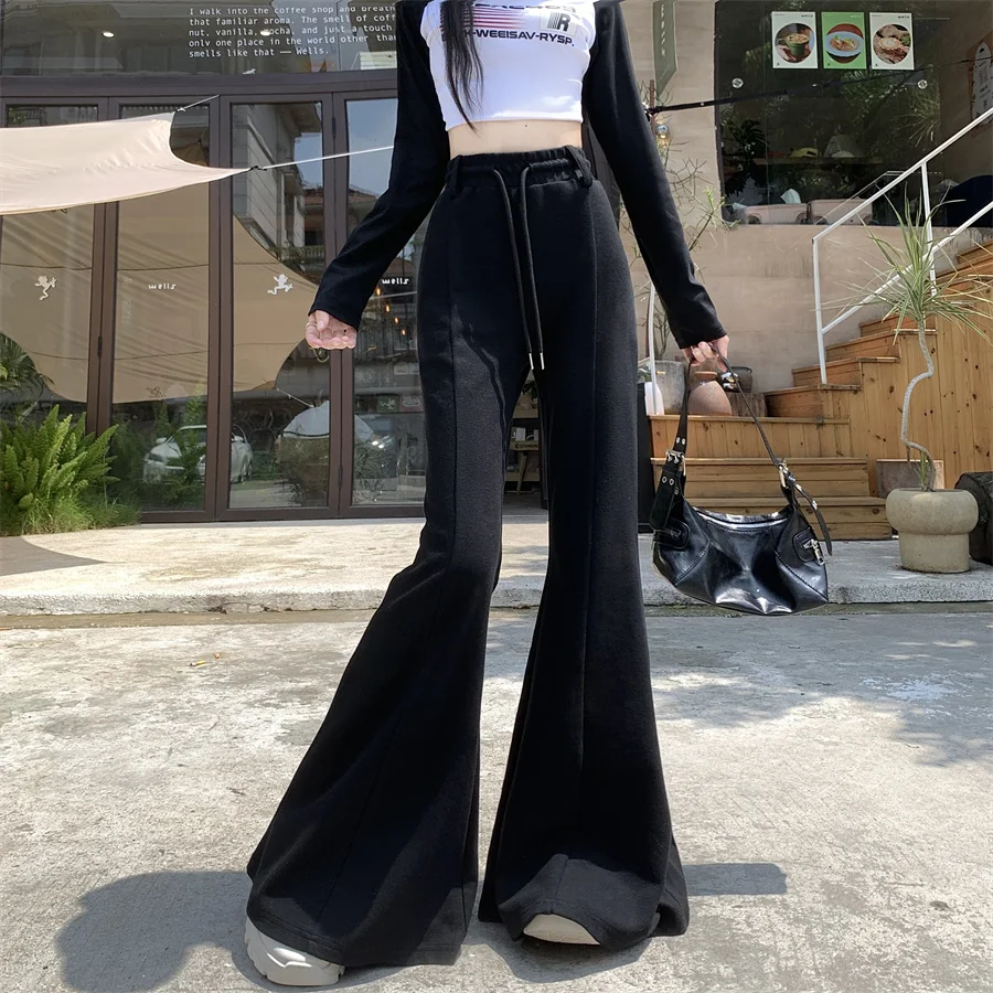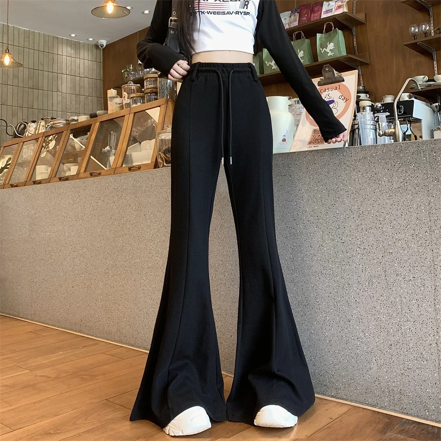 New China Spring and autumn new big horn bell bottoms high waist sagging feeling women leisure sports pants