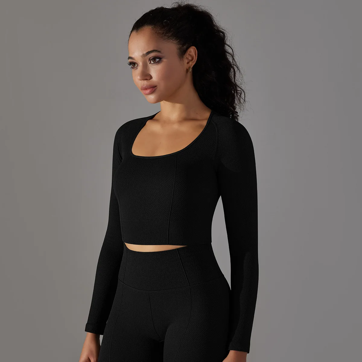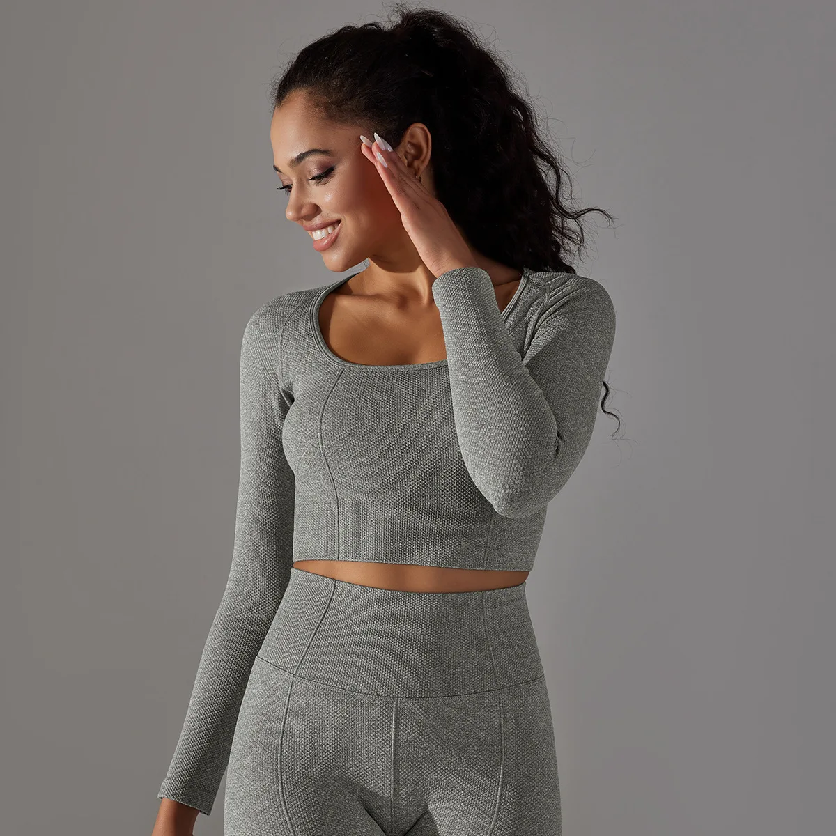 New Seamless Solid Colors Women Tank Tops Yoga Tight Long Sleeves Fitness Yoga Tops Striped Yoga Tops
