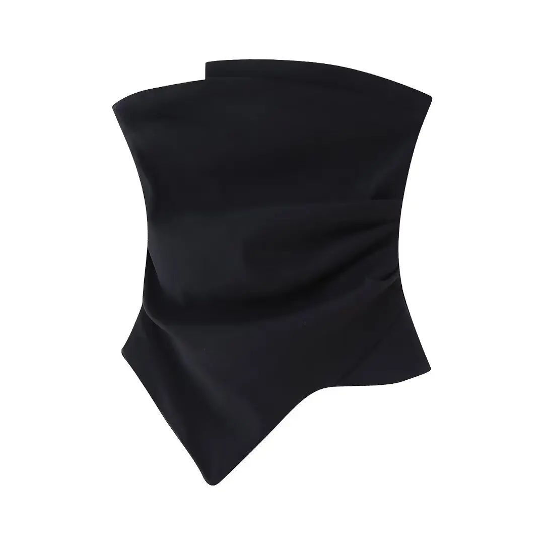 PB&ZA Women 2024 Summer New Chic Fashion Pleated Embellished Chest Top Tank Tops Vintage Backless Female Camis Chic Tops