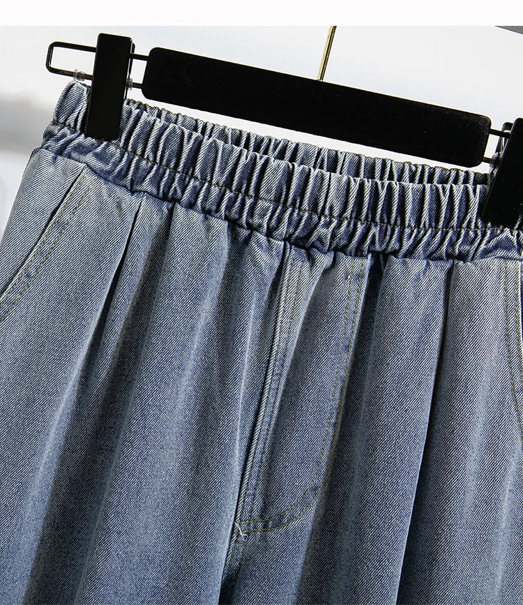Plus Size Jeans For Women 2025 Autumn New Arrival High Elastic Waist Harem Denim Pants Korean Style Fashion Blue Jeans Woman