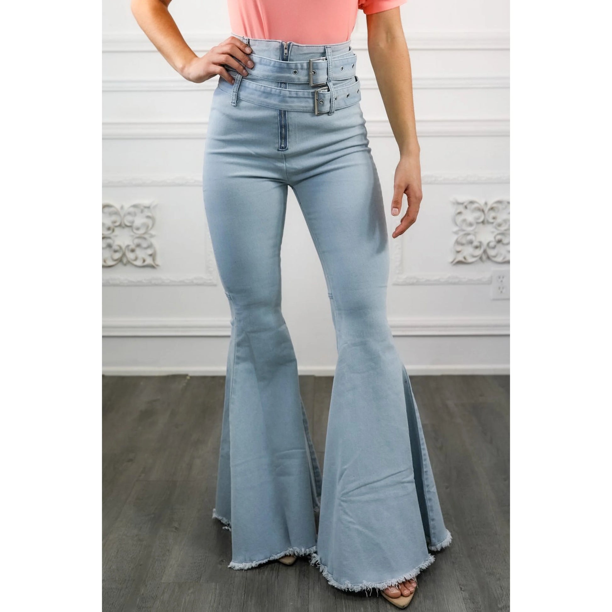 Product Introduction: The TD Buckle Up Bell Bottoms Jeans with Dual Belt Details is a stylish and versatile addition to any wardrobe. Crafted from high-quality denim, these jeans feature a flattering high-waist design and iconic bell-bottom silhouette, perfect for making a bold fashion statement. Core Characteristics: These jeans boast dual belt details that add an extra layer of style and functionality. The frayed hem adds a trendy, edgy touch, while the available sizes (S, M, L) ensure a comfortable fit for various body types. Ideal for both casual outings and dressed-up events, these jeans are a must-have for fashion enthusiasts. Purchase Reasons: Invest in the TD Buckle Up Bell Bottoms Jeans for their exceptional blend of comfort and style. The durable construction ensures longevity, making them a worthwhile investment. Elevate your outfit effortlessly with these jeans, which pair seamlessly with a variety of tops and accessories. Stand out with confidence in this timeless yet modern piece.