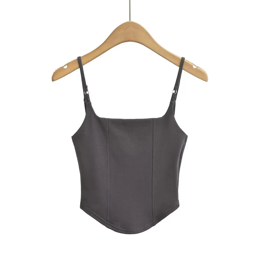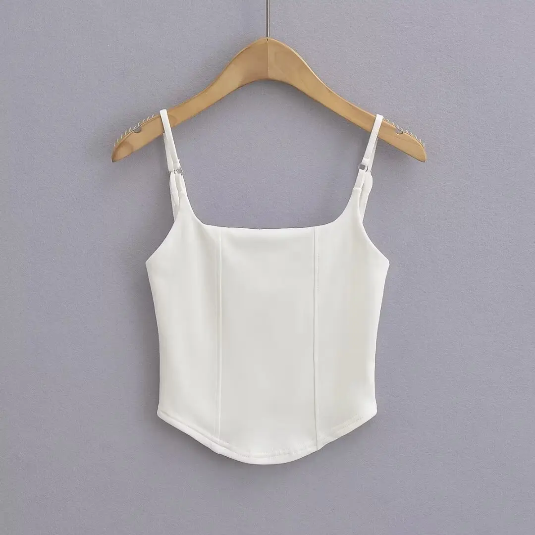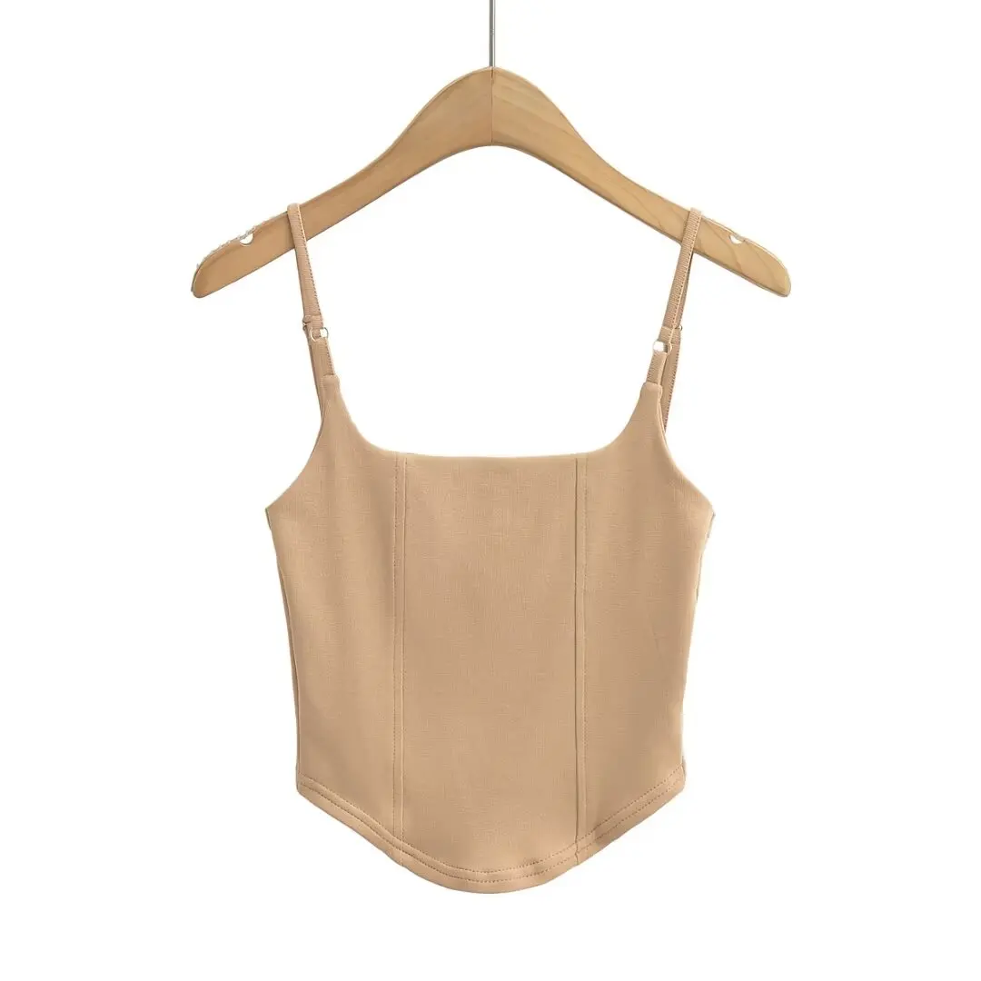Women 2024 Summer New Fashion Adjustable Fishbone Tank Tops Vintage Slim-Fit Casual Female Short Camis Chic Tops