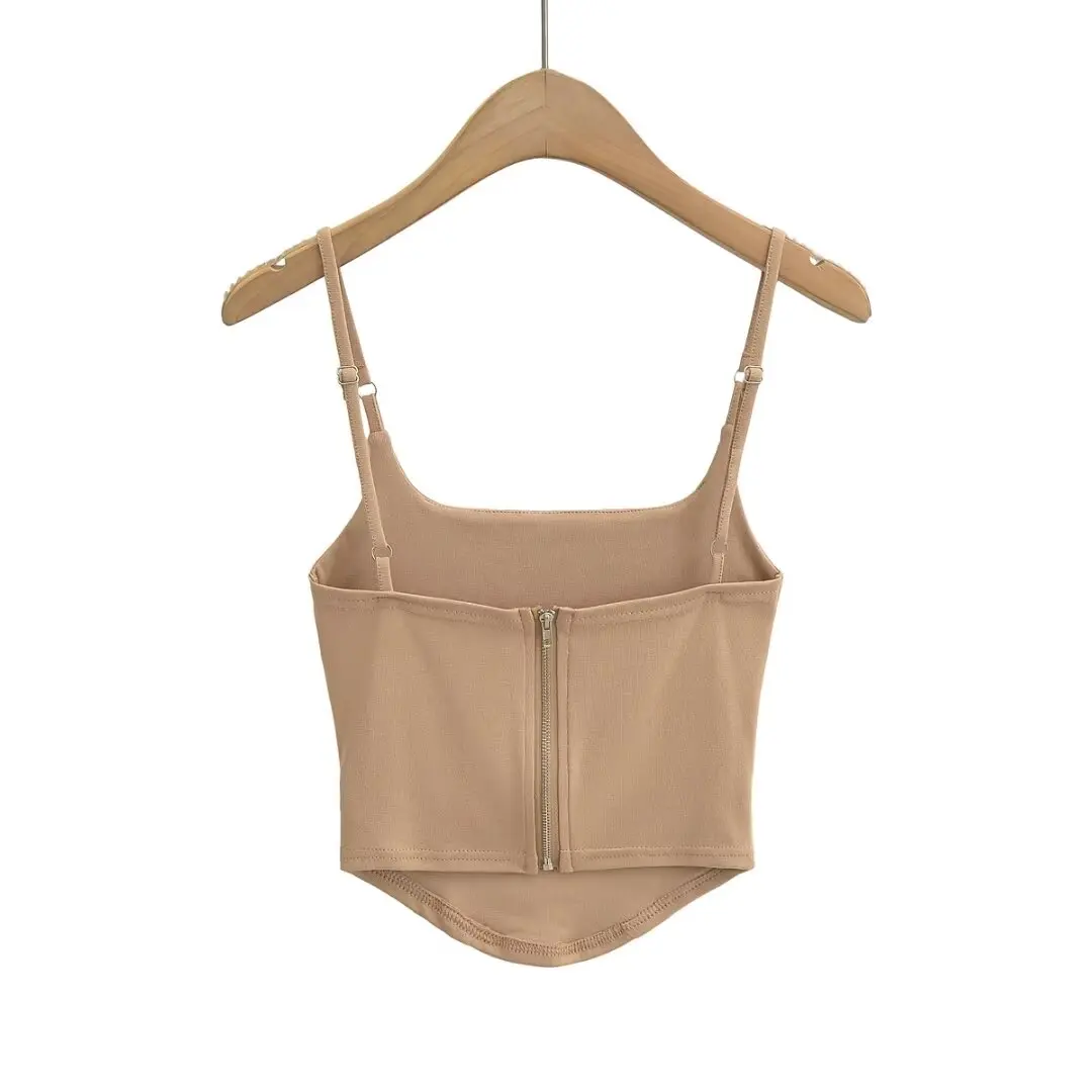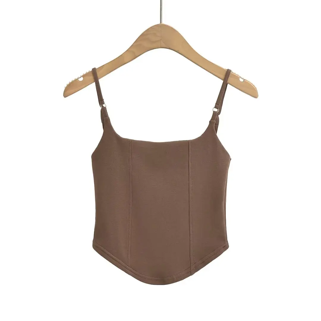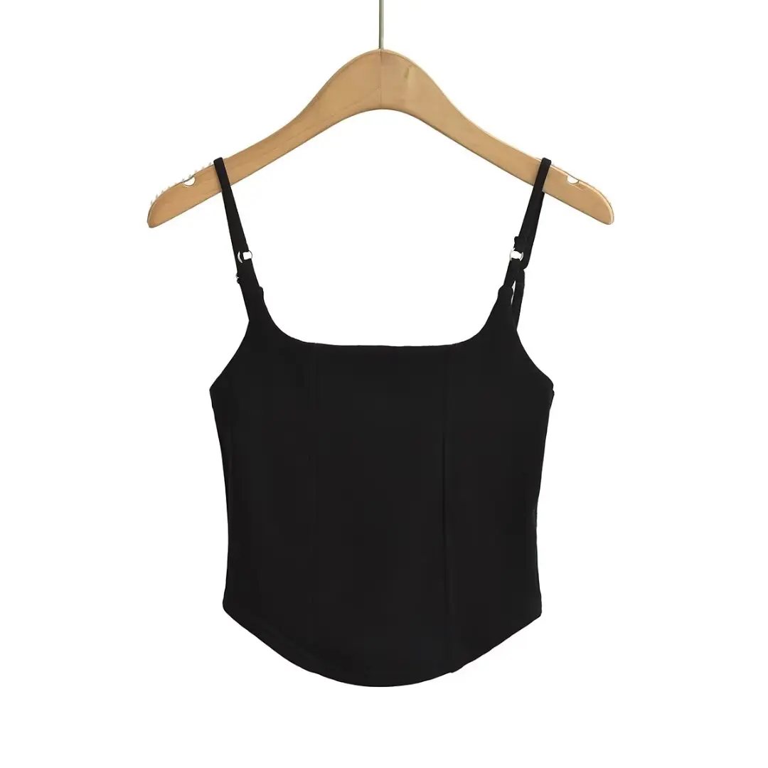 Women 2024 Summer New Fashion Adjustable Fishbone Tank Tops Vintage Slim-Fit Casual Female Short Camis Chic Tops