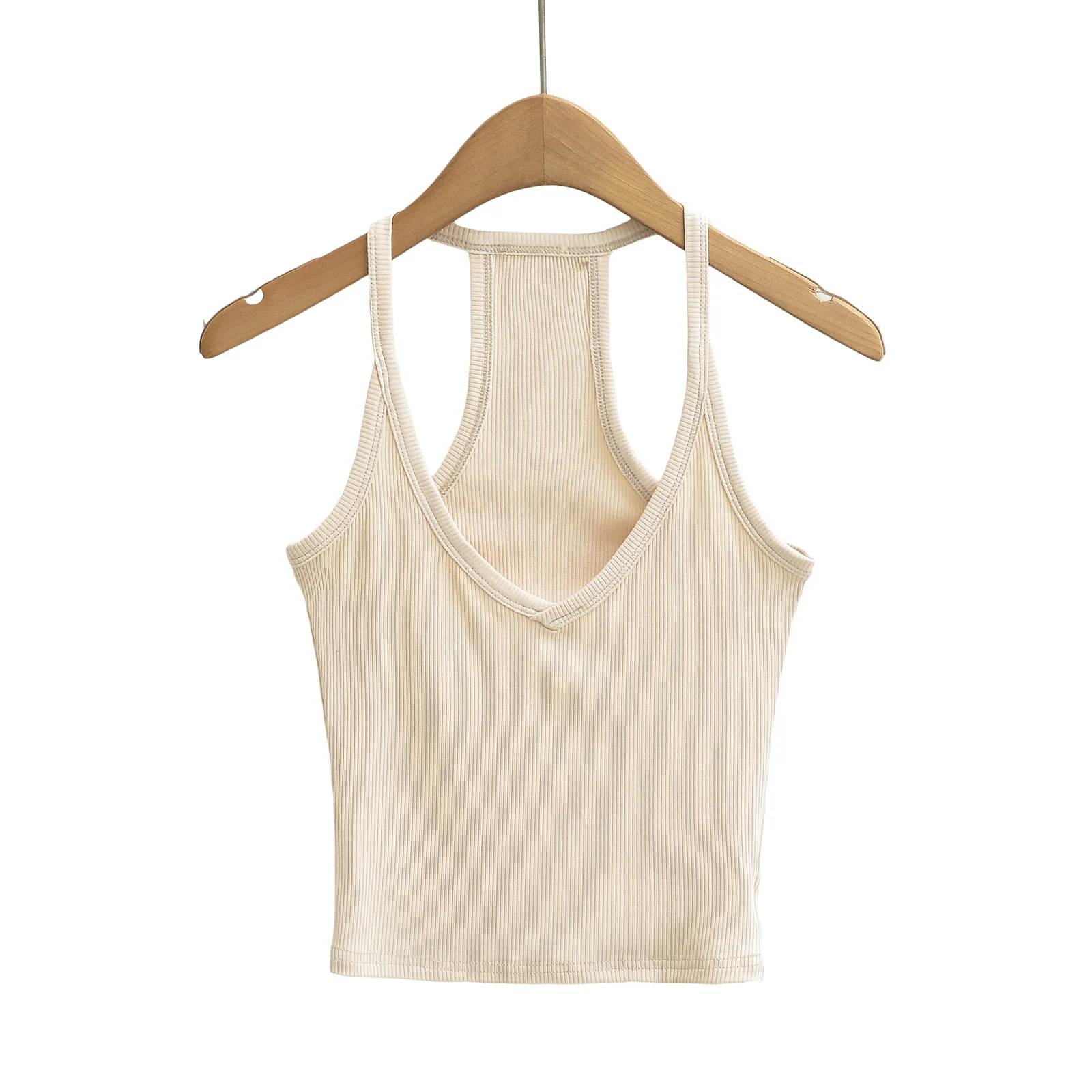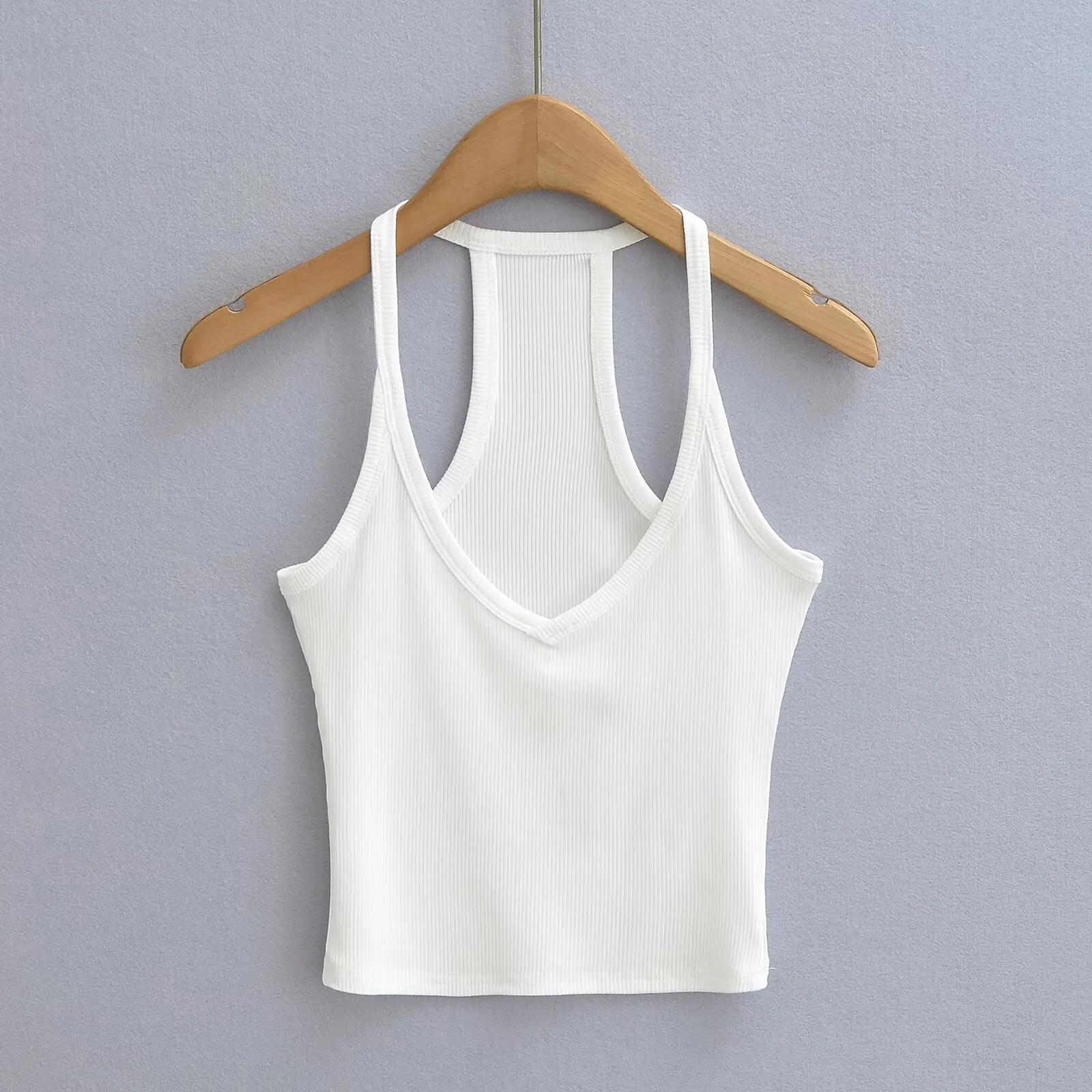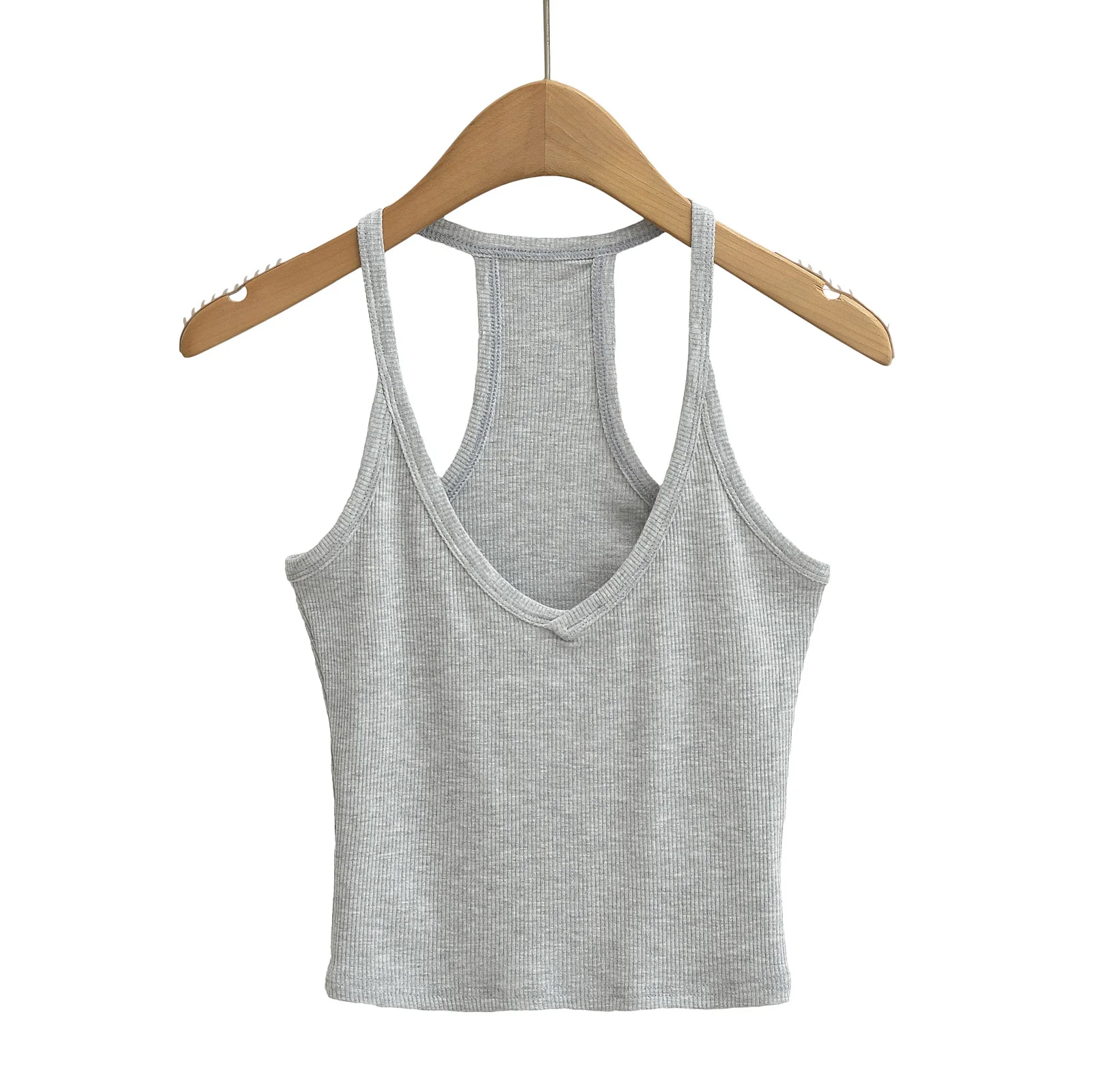 Women 2024 Summer New Fashion Deep V-Neck Small Tank Tops Vintage Slim-Fit Casual Female Camis Chic Tops