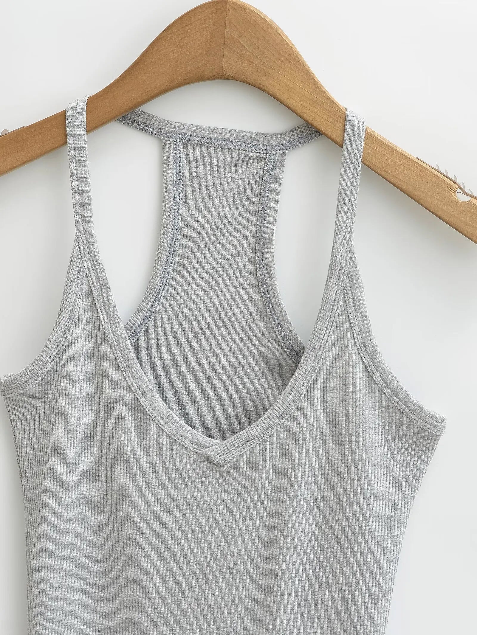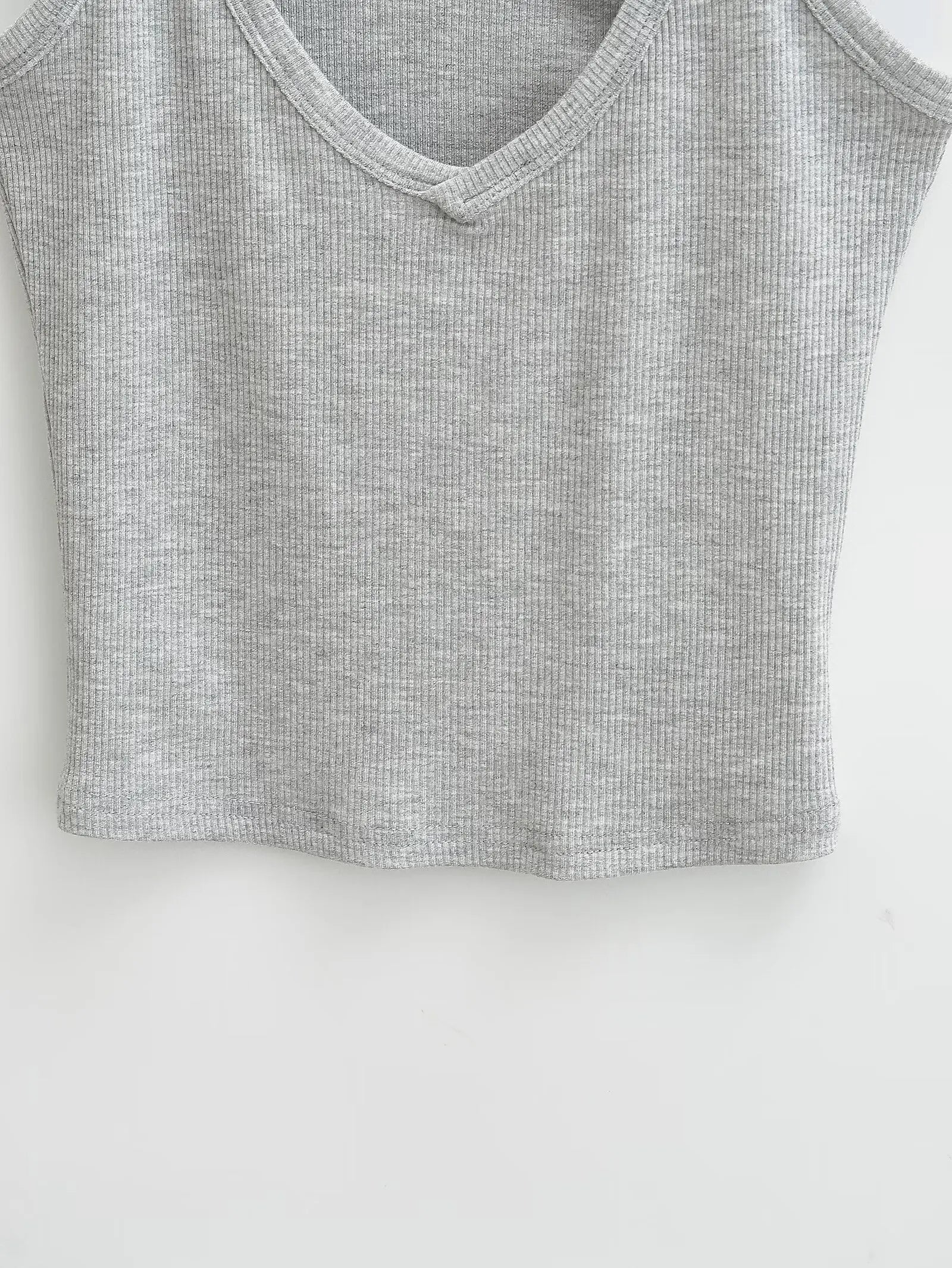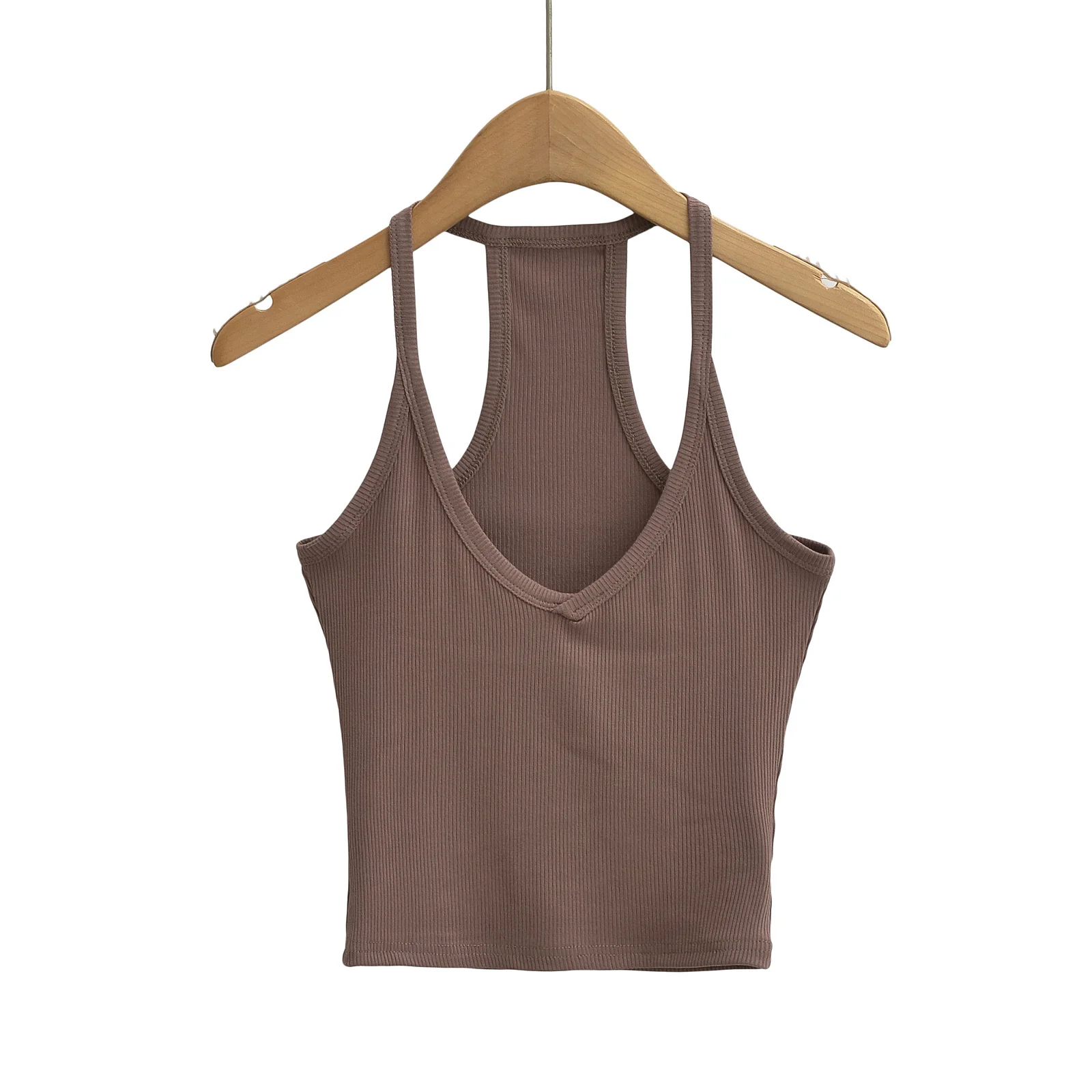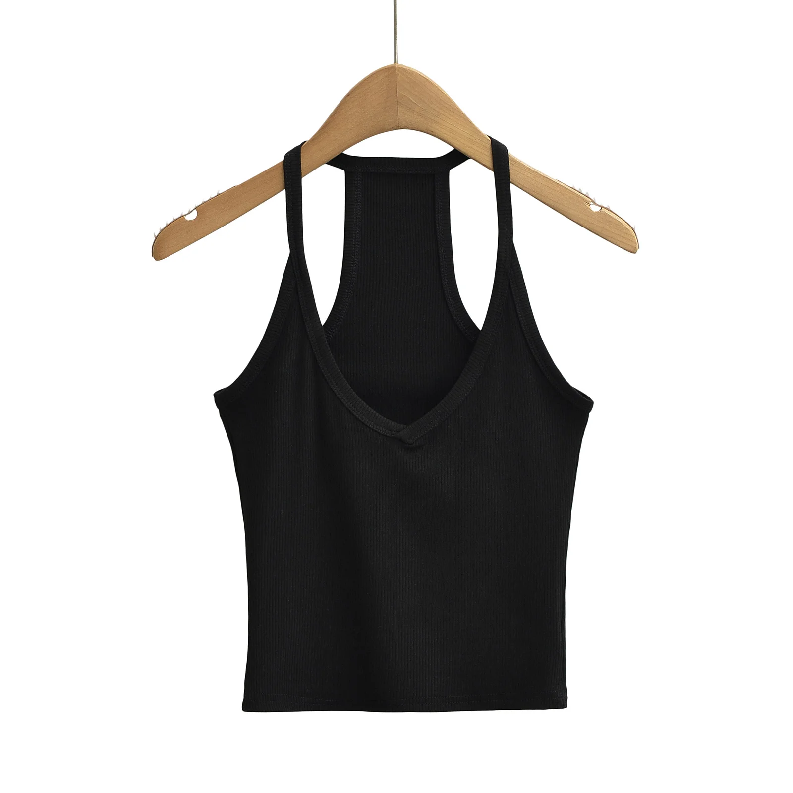Women 2024 Summer New Fashion Deep V-Neck Small Tank Tops Vintage Slim-Fit Casual Female Camis Chic Tops