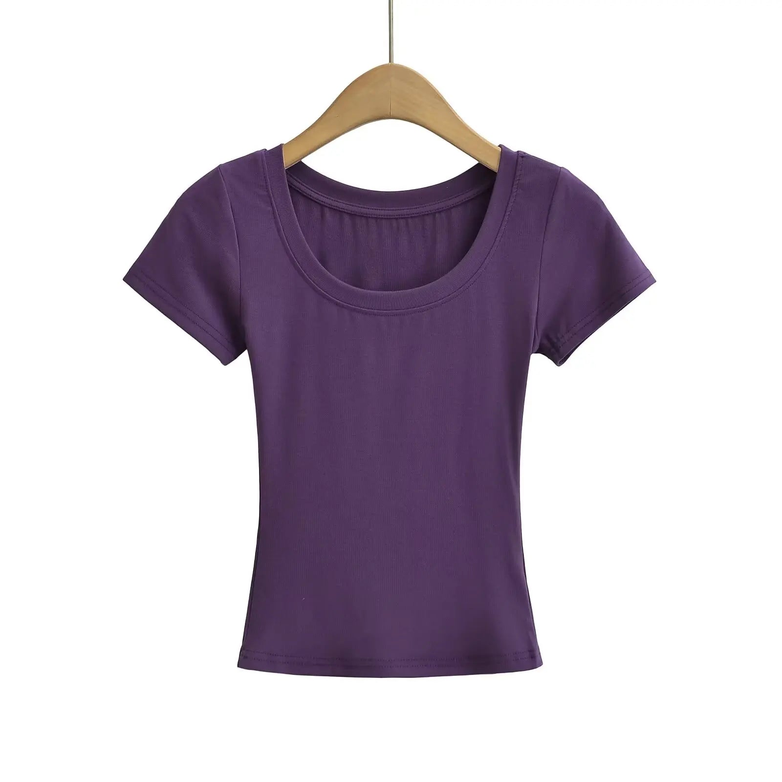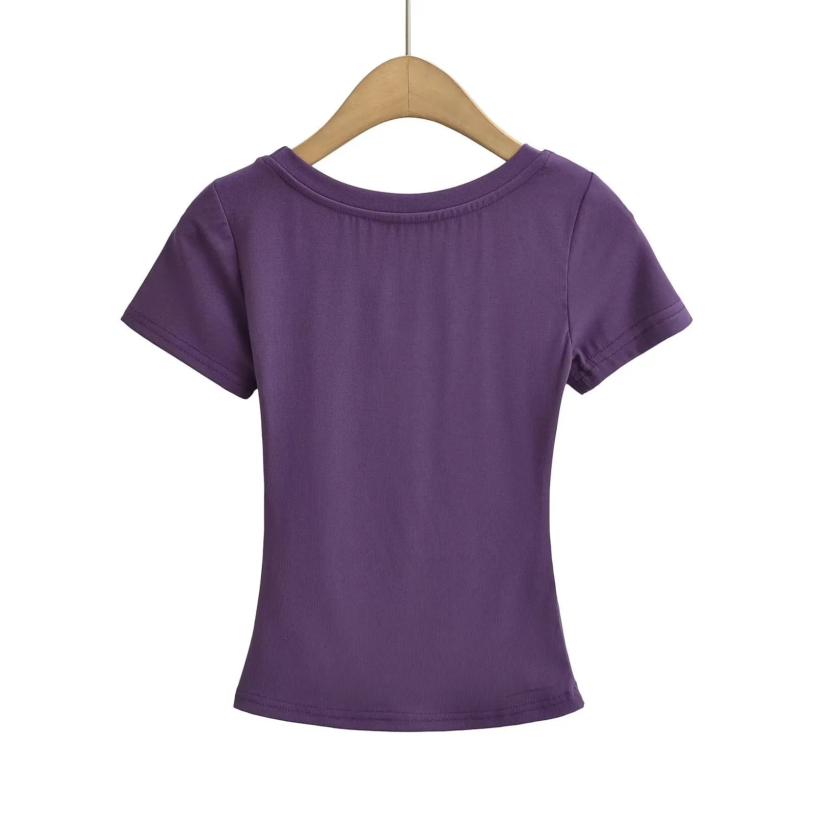 Women 2024 Summer New Fashion Flat T-Shirt Vintage Slim-Fit Casual Chic Female Tee Shirt Tops Mujer