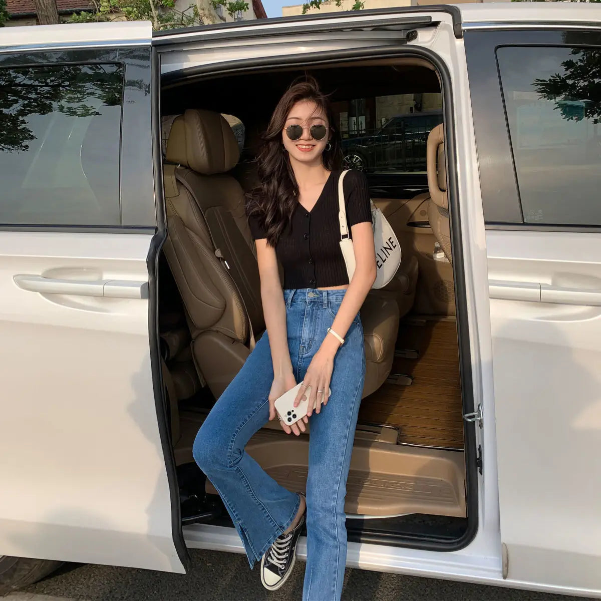 Women's Flared Jeans with Slits Bell Bottom Trousers Retro High Waist Shot Cowboy Pants for Woman Original Top Selling Baggy R Z